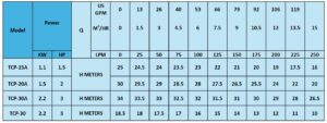 Introducing Texmo Pumps, the premier manufacturer and supplier of Asia’s leading range of Peripheral and Centrifugal water pumps! Our extensive lineup includes over ten models of TCP pumps, each tailored to specific requirements, ensuring superior performance and reliability from the TCP-05, TCP-10, TCP-15, TCP-15A, TCP-20A, TCP-30, TCP-30A, our pumps boast varying specifications to cater to diverse needs. With a maximum pressure capacity of 1300 LPM and a speed of 2900 RPM, Texmo Pumps ensures unmatched efficiency and productivity.